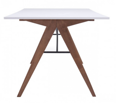 Una pieza clásica. No es una pieza arriesgada pero tiene un look muy limpio. La combinación del blanco con madera siempre es una buena idea. Esta mesa de comedor también cabe en una tendencia de diseño de interiores: la incorporación de la madera en tu hogar. Puedes acompañar esta mesa con un esquema de colores claro, incluso puedes añadir un piso de mármol blanco para complementar el look y la combinación. Usa tonos blancos, cafés, rosas claros y azules claros. Añade esta mesa en tu comedor, complementa el look con sillas de madera con cojines azul claro, un florero azul pastel, una credenza de madera, algunas velas altas de color blanco y un espejo plateado.